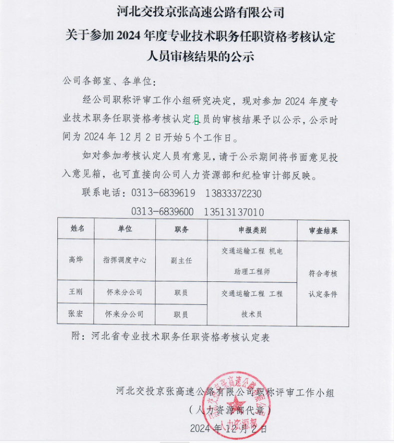 關于參加2024年度專業技術職務任職資格考核認定人員審核結果的公示